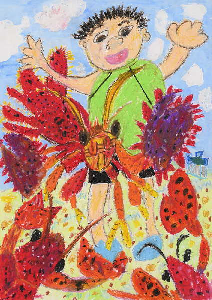 ザリガニをつかまえるぼく