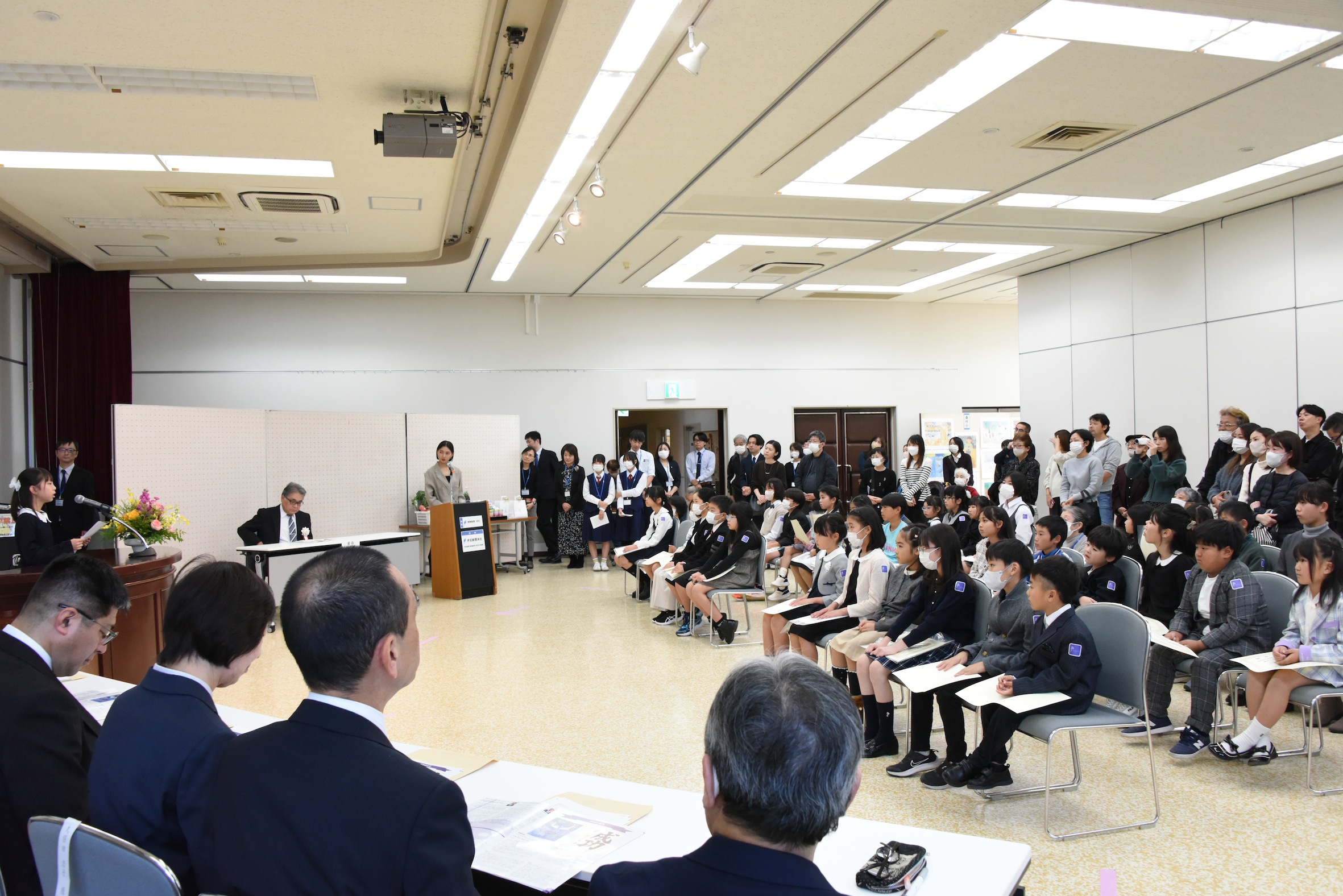 当会場は、静岡県函南町の子どもたちが、絵画や書の創作を通して豊かな心を育み、夢や目標に向かってチャレンジする力を高める一助となることを願って開催しています。