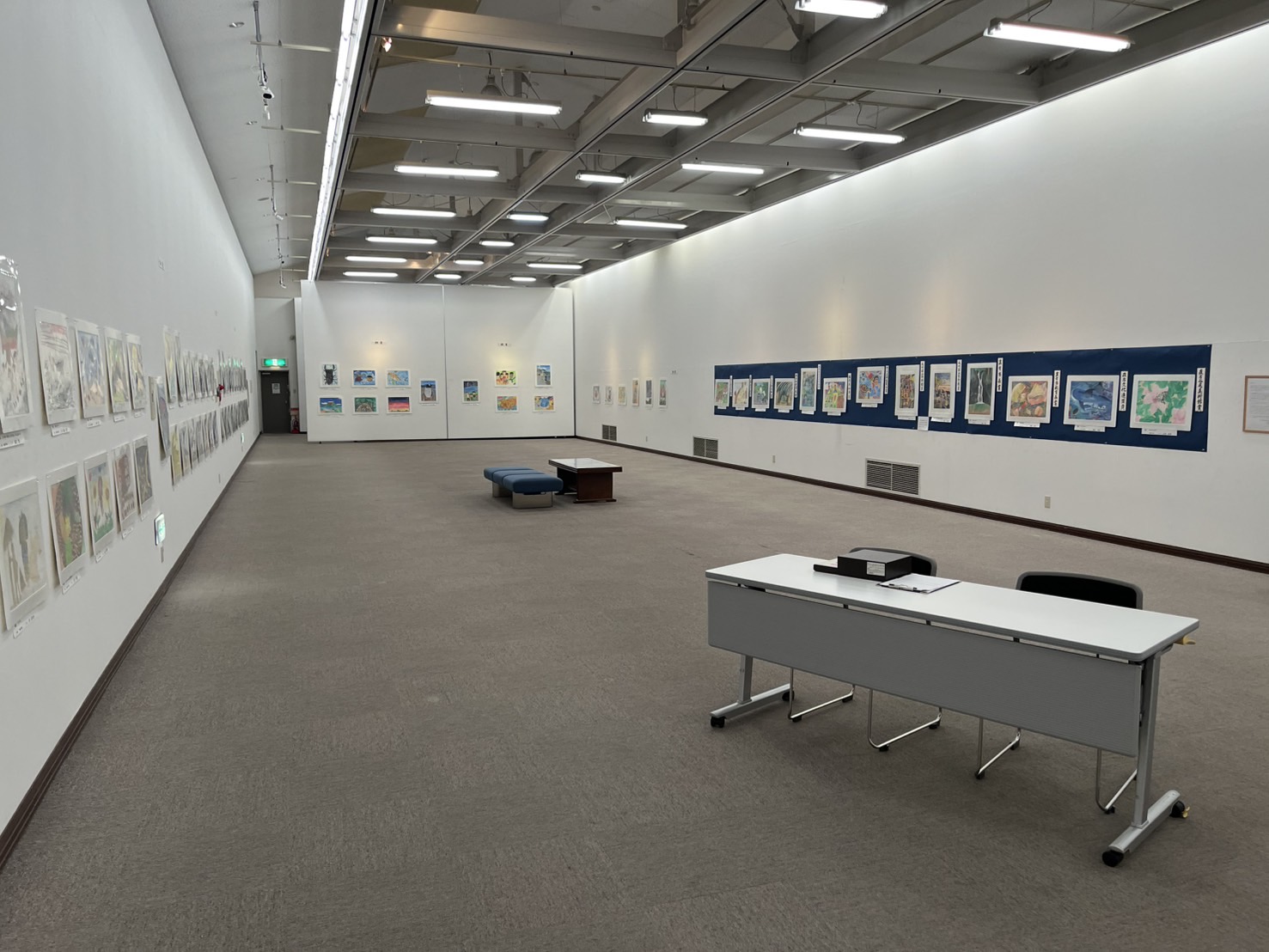当作品展は、地域に根差した作品展の開催に重きを置き、行政・教育委員会のご協力のもと作品を募集し、直方谷尾美術館において、ボランティアの皆さんのご協力をいただいて、優秀作品を展示し開催しています。